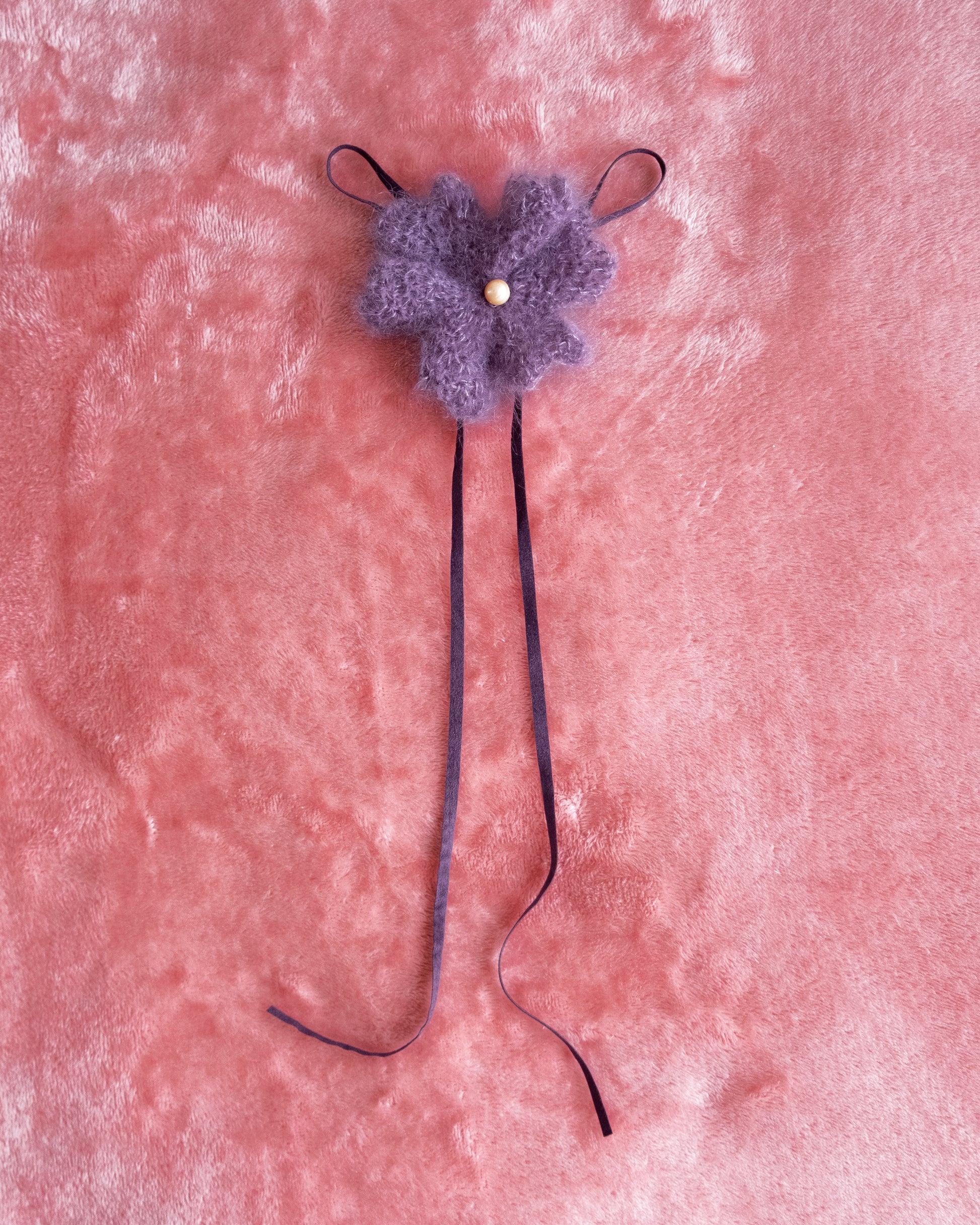 Elevate your style with the Tied up Water Lily, a limited-edition piece handcrafted in collaboration with Calabrian artisans. Featuring a delicate flower crocheted from the softest Italian mohair wool and adorned with a genuine yellow toned freshwater pearl, this unisex piece is a perfect blend of elegance and artistry. The soft, elastic band offers unmatched versatility, wear it as a choker, bracelet, garter, headband, belt, or any way you desire.